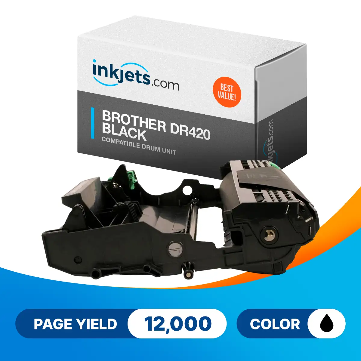 The Compatible Brother DR420 Laser Drum Unit Black can be used safely with a number of Brother printers. These include the Brother DCP-7060D, FAX-2840, HL-2220, IntelliFAX 2840, and MFC-7860DW (check more compatible printers in the list below). For your additional protection this compatible drum unit is also covered with a solid 1-year warranty and 100% satisfaction guarantee. Order today and see firsthand the excellent results this option can provide.