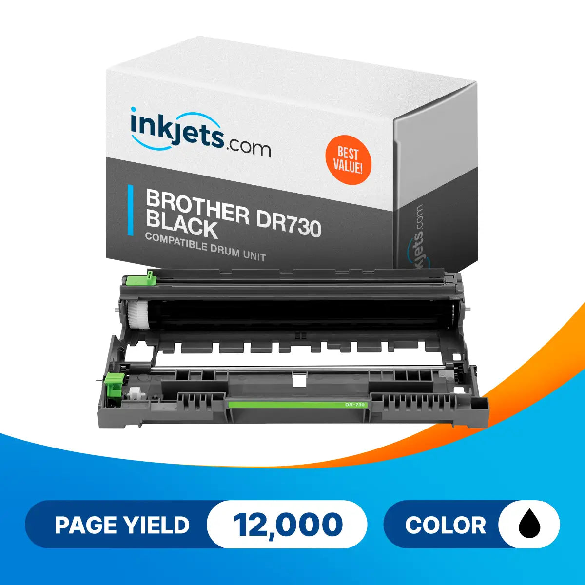 Our Compatible Brother DR 730 Drum Unit works safely with a number of Brother printers including the Brother DCP-L2550DW, HL-L2350DW and MFC-L2750DW models. Using them won't void the printer's existing warranties as well. For your greater peace of mind Inkjets.com has got this compatible drum unit covered with an exclusive 1-year warranty and 100% satisfaction guarantee. Make sure to order today and get up to 64% off plus get free shipping for orders worth $30 or more.