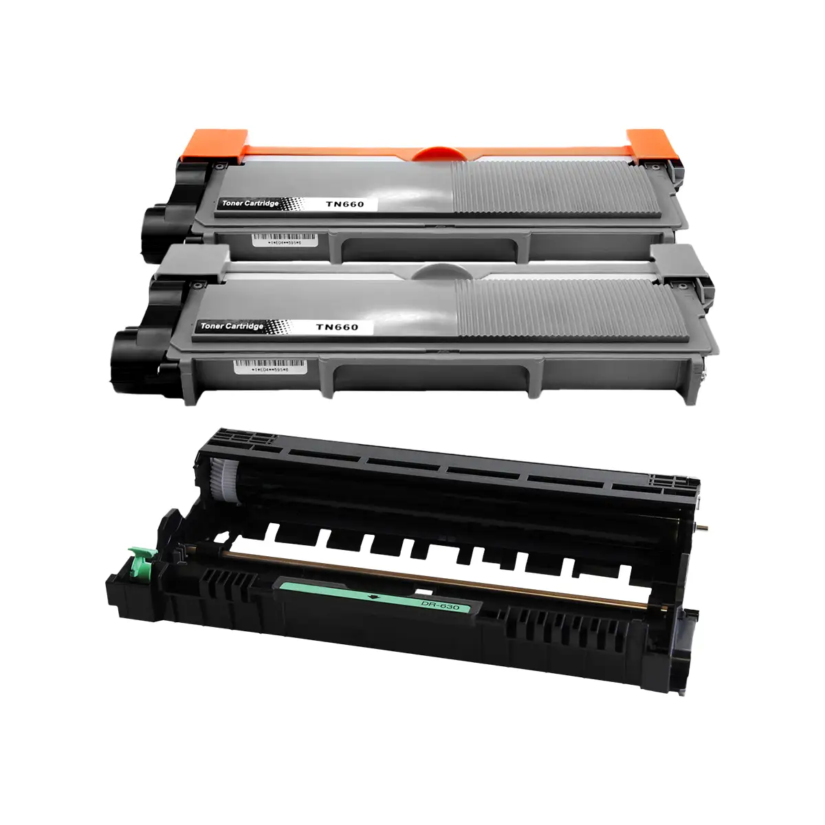 The Compatible Brother TN660 & DR630 Toner Cartridge is an excellent option for those looking to save more on their printer consumables. This set comes with two black cartridges offering 2,600-page yield each plus a compatible drum unit that supports their performance. In fact, this sturdily built and designed drum unit allows for up to 12,000 prints before it requires replacement. The toner cartridges can deliver the same incredibly razor-sharp and vivid output of OEMs.