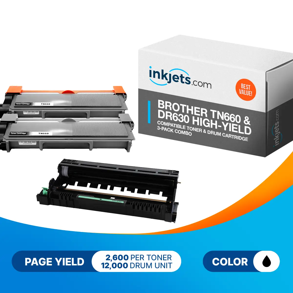 Printer compatibility is never an issue with the Compatible Brother TN660 & DR630 Toner Cartridge 3-Pack High-Yield . Its cartridges and drum unit can be used safely with the Brother DCP-L2500D, DCP-L2520DW, HL-L2300D, HL-L2380DW, MFC-L2680W and MFC-L2740DW printers. More compatible printer models can also be found below. Once you order this combo pack expect it to arrive at your address right on schedule thanks to our superb same-day shipping and fast delivery service. Shop now and enjoy greater savings.