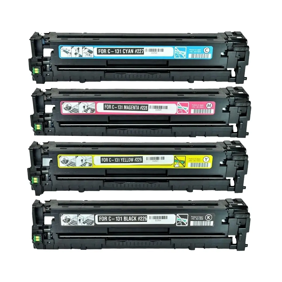 The Compatible Canon 131 Toner Cartridge 4-Piece Combo Pack can be safely used with a number of Canon ImageCLASS printers. These include the LBP7110CW, MF624CW, MF628CW and MF8280CW models. A plus using these cartridges will not void your devices' warranty. And if you're still uncertain about picking this combo pack know that it comes with our nifty 1-year warranty 100% money-back guarantee and free returns for your greater protection. Shop with us and enjoy the best deals.