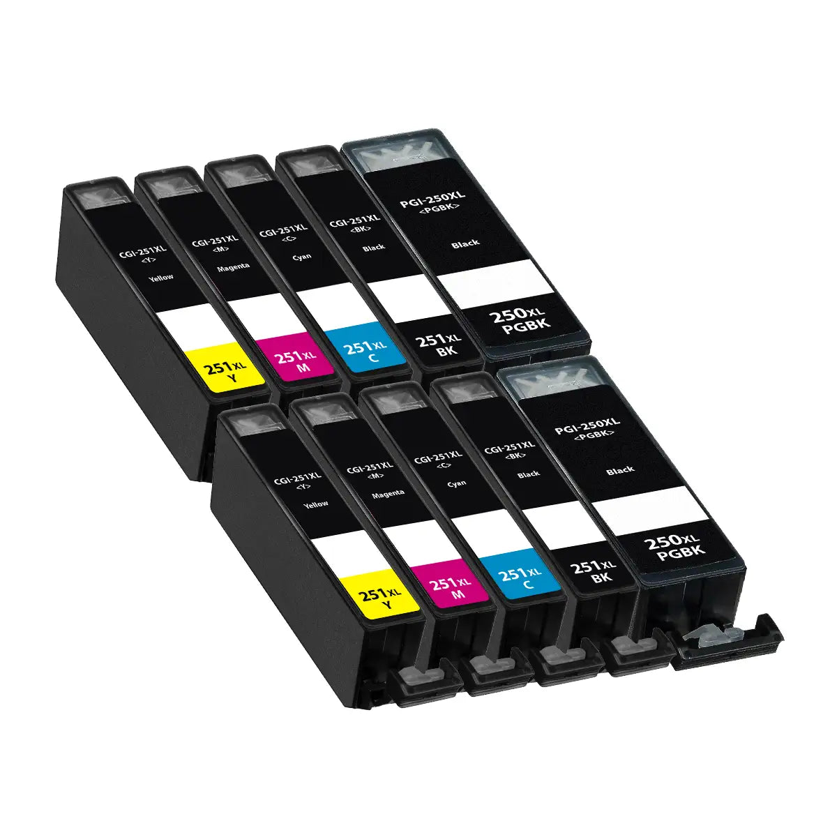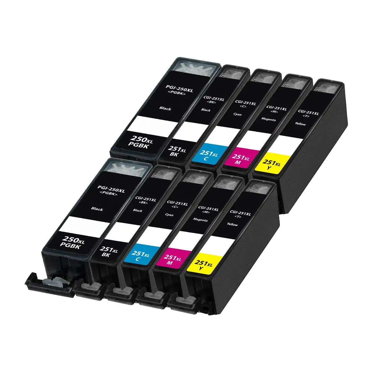Our Compatible Canon PGI-250 & CLI-251 Ink Cartridge offers a great opportunity to save money without lowering the quality of your prints. The High-Yield 10-Piece Combo Pack already includes four black high-yield cartridges and two of each cyan magenta and yellow high-yield cartridges. This means you can avoid long downtimes allowing for smoother continuous print performance instead. The cartridges in this combo pack can also deliver the same sharp and vivid print output of OEMs. However our options allow you to save more thanks to their budget-friendly price.