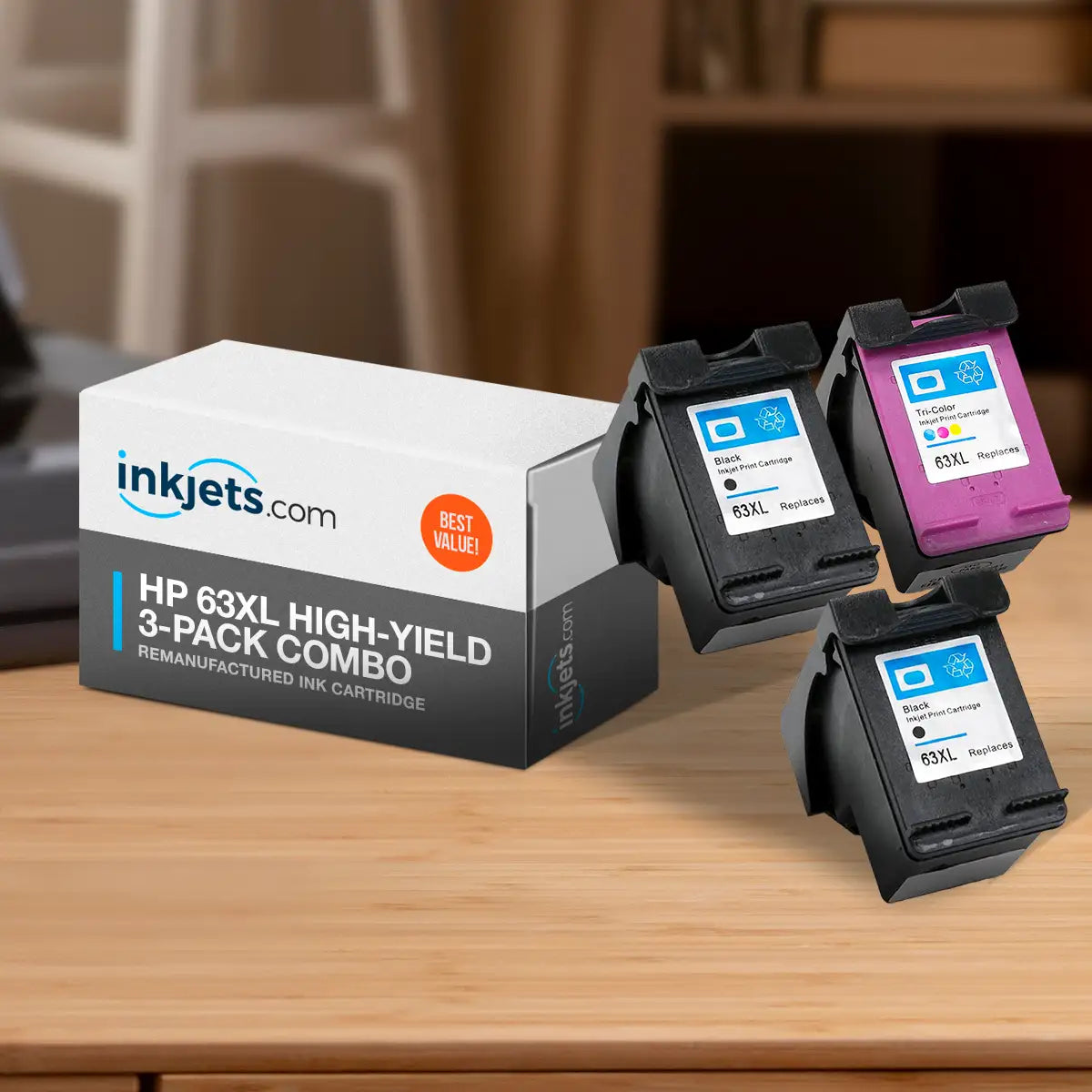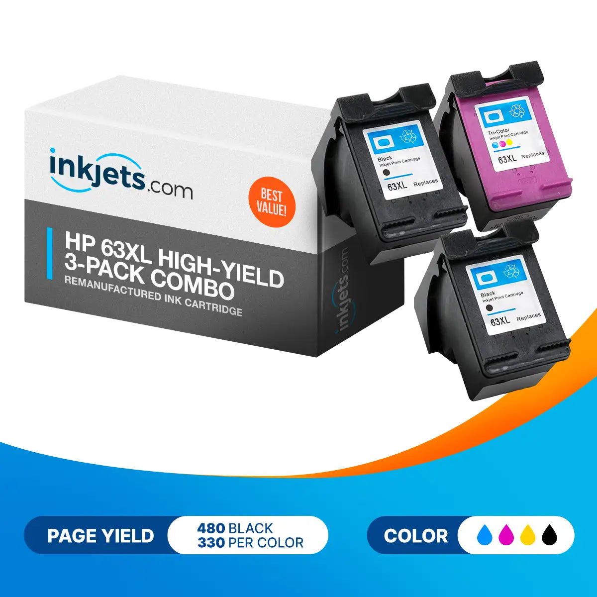 Completing any printing task is smoother with the Remanufactured HP 63XL ink cartridge. It is a high-yield 3-piece combo pack that includes two black ink cartridge with 480-page yield and one color high-yield ink cartridge which can offer 330. All 3 units come at high-yield capacity allowing for uninterrupted print performance. That's not all, the excellent ink cartridges in this combo pack can last 18-24 months with proper storage.