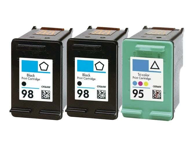 Instead of overspending on branded cartridges why not go for the high-quality yet affordable Remanufactured HP Ink 98 & 95 Cartridges from Inkjets.com? This 3-piece combo pack comes with two black cartridges that can print up to 420 pages each and one tri-color cartridge which can produce up to 330. With these options dealing with your large print jobs is easier and faster. And while more cost-effective than OEM units our remanufactured cartridges can create the same super-sharp and brilliant output.